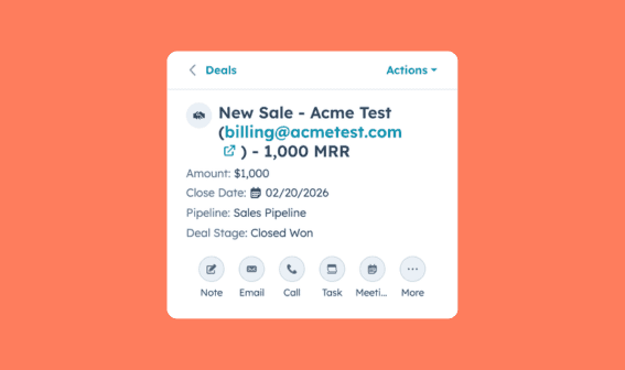 ✅ Result: Your HubSpot pipeline reflects real revenue. Finance has a source of truth they can trust, sales can see every closed deal with the correct MRR, and your team gets notified in Slack or email the moment it happens.